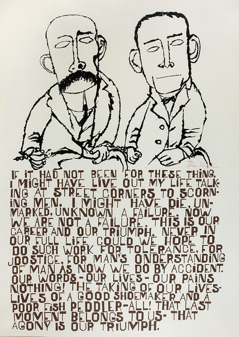 This afternoon, I’m writing a talk that I will give to university students in France in a few weeks. They have asked me to speak about the importance of art and cartoons in our world, in freedom of expression and journalism. It has me reflecting on the span of time in which I have worked, how to express the changes I have seen, not only in the world, but in the art form I love. One artist I will tell them about is Ben Shahn. When I discovered his work in my teens, I was captivated with how he used line and brush to convey his passion for social justice. I share just a few images of his work here. Here is a recent article in The New Yorker; there was an exhibit of his work at the Jewish Museum in NYC (I missed it, sadly. It just closed today!). Shahn was a true activist in his art. Shahn wrote a book called The Shape of Content, which I read in my youth and still own. In it, Shahn writes of the relationship of the artist to his material, his craft, and society. It’s a lecture he gave in 1957, and he talks on creation of the work of ar |