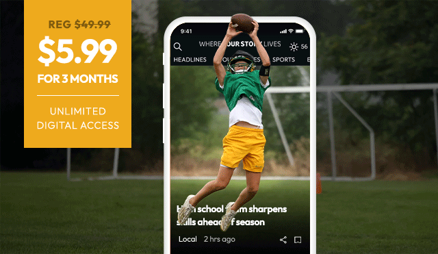 *Ad-free offer applies to our website and app. Does not extend to E-edition or third-party websites, such as Obituaries, Marketplace, Jobs, etc., or our content on social media platforms. Offer renews to standard rate after introductory period ends. Plus tax where applicable; see payment page and Terms of Use for details.