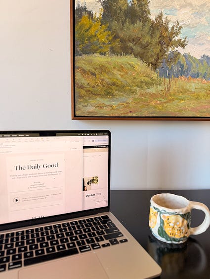 Welcome to The Weekend Edit, a Saturday morning ritual from The Good Trade. Happy Saturday, I almost titled this weekend’s edition How I prioritize my time as a busy working mom. But the truth is, I’m not striving to be busy and I certainly don’t do it all. This week I found myself reflecting on the myth of balance: the idea that we can give equal attention to career, motherhood, friendships, “wellness”, spiritual pursuits, hobbies, and personal rest all at once. The reality is, we make choices. I find myself in a season of letting some things go so I can hold onto a few things and attempt to do them well with all my heart. Today, I’m sharing exactly how I structure my workweek — what I prioritize, what I sacrifice, and the things I’m not doing much of at this time in my life. ... Subscribe to The Good Trade to unlock the rest.Become a paying subscriber of The Good Trade to get access to this post and other subscriber-only content. A subscription gets you: