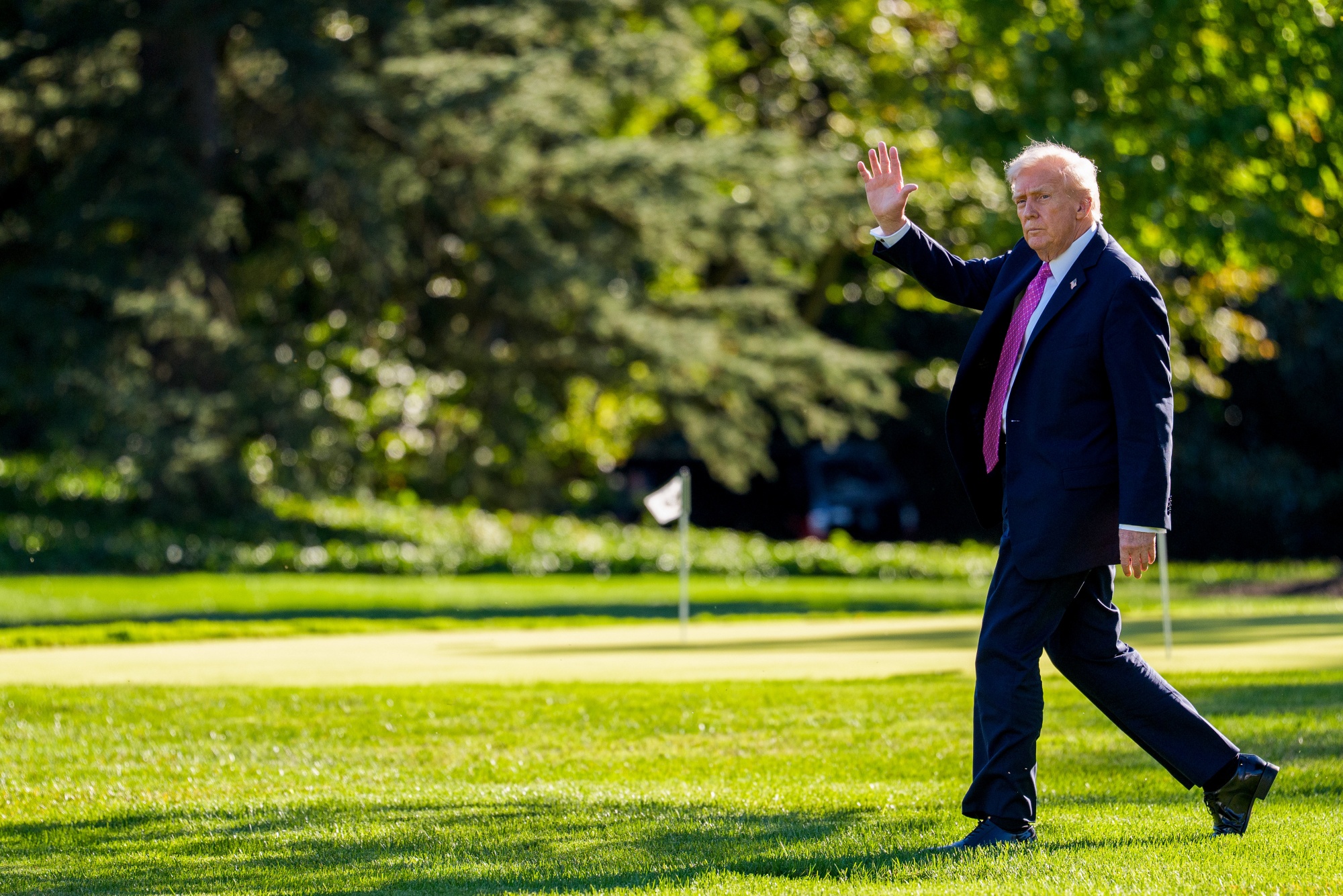 Donald Trump walks on the South Lawn of the White House on Oct. 17 Photographer: Aaron Schwartz/Sipa