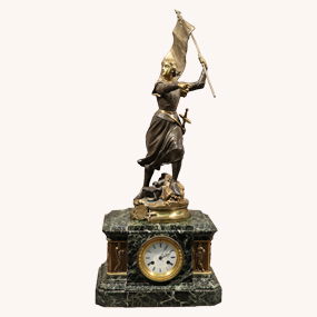 A. Gaudez, Bronze and Green Marble Clock (Joan of Arc)