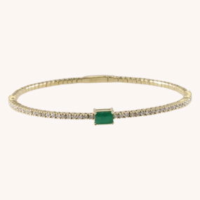 14Kt yellow gold emerald and diamond bangle bracelet.