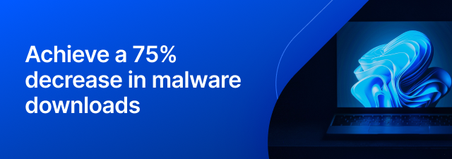 Recent research shows that you can achieve a 75% decrease in malware downloads by deploying Webroot DNS Protection in OpenText Secure Cloud.