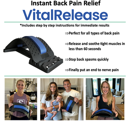 VitalRelease is a premium stretching aid that will help you release the tension in your back and relieve back pain in as little as 60 seconds!