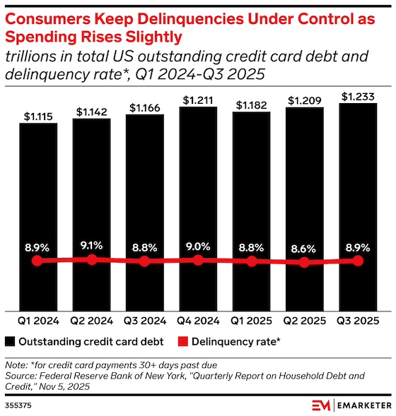 Key stat: US outstanding credit card debt reached $1.233 in Q3 2025, according to data from the Federal Reserve Bank of New York. | | | |