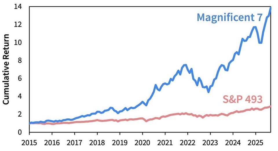 Możemy się rozpisywać i wyjaśniać na temat gigantycznych i nie do końca "zdrowych" wzrostów w ostatnich latach – jak czynimy to od dłuższego czasu, ale możemy też wrzucić tą prostą grafikę i zadać jedno (cytując klasyka) "zaje… BARDZO ważne pytanie": czy to jeszcze SP500, czy dwa osobne indeksy?