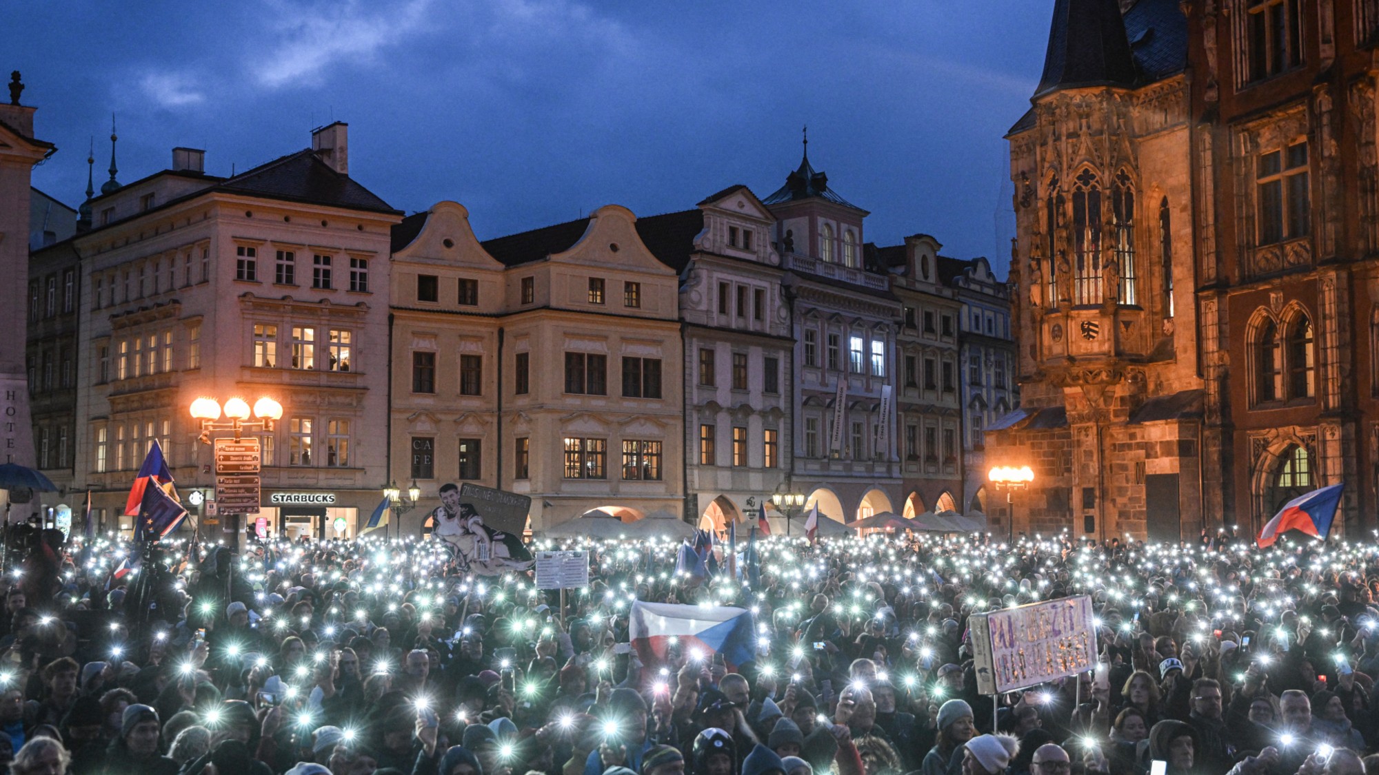 People light their phones as they take part in a demonstration commemorating the 36th anniversary of the 1989 Velvet Revolution, at the Old Town Square in Prague, Czech Republic. The Velvet Revolution brought the end of 41 years of one-party communist rule. Michal Cizek / AFP / Getty Images