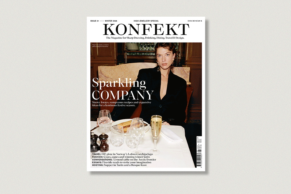 As temperatures drop and the holidays draw near, Konfekt’s winter issue will be your sparkling companion through the colder months. From snow-dusted forays in Norway’s Lofoten and toboggan rides in the Swiss village of Grindelwald to a festive supper in Turin, our high-jewellery special offers plenty of covetable gift ideas and hosting tips for a luminous winter season.