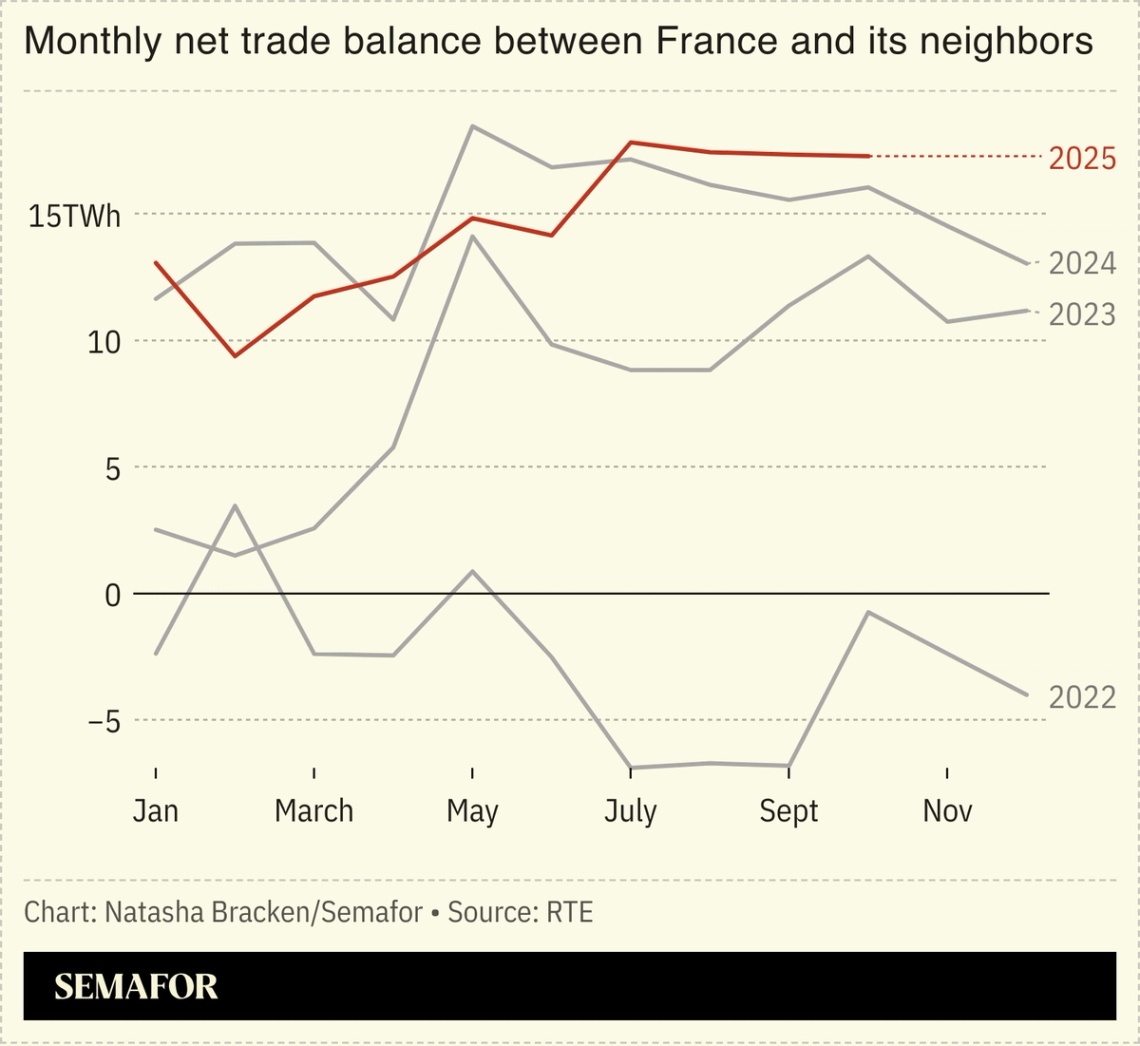 • France exported the most electricity in at least two decades from July to October, driven largely by the country’s improved nuclear fleet, which supplies more than two-thirds of the country’s electricity.