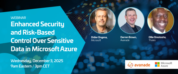 We are excited to invite you to our exclusive webinar, Enhanced Security and Risk-Based Control Over Sensitive Data in Microsoft Azure, featuring leading experts from Thales, Avanade, and Microsoft.