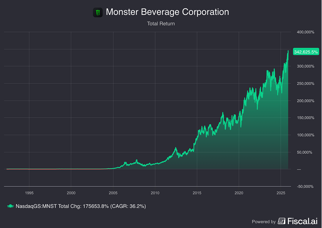 Or imagine you bought shares in Monster Beverage. Monster Beverage has risen by +175,600% since 2001. You only need one investment like this in your entire life.