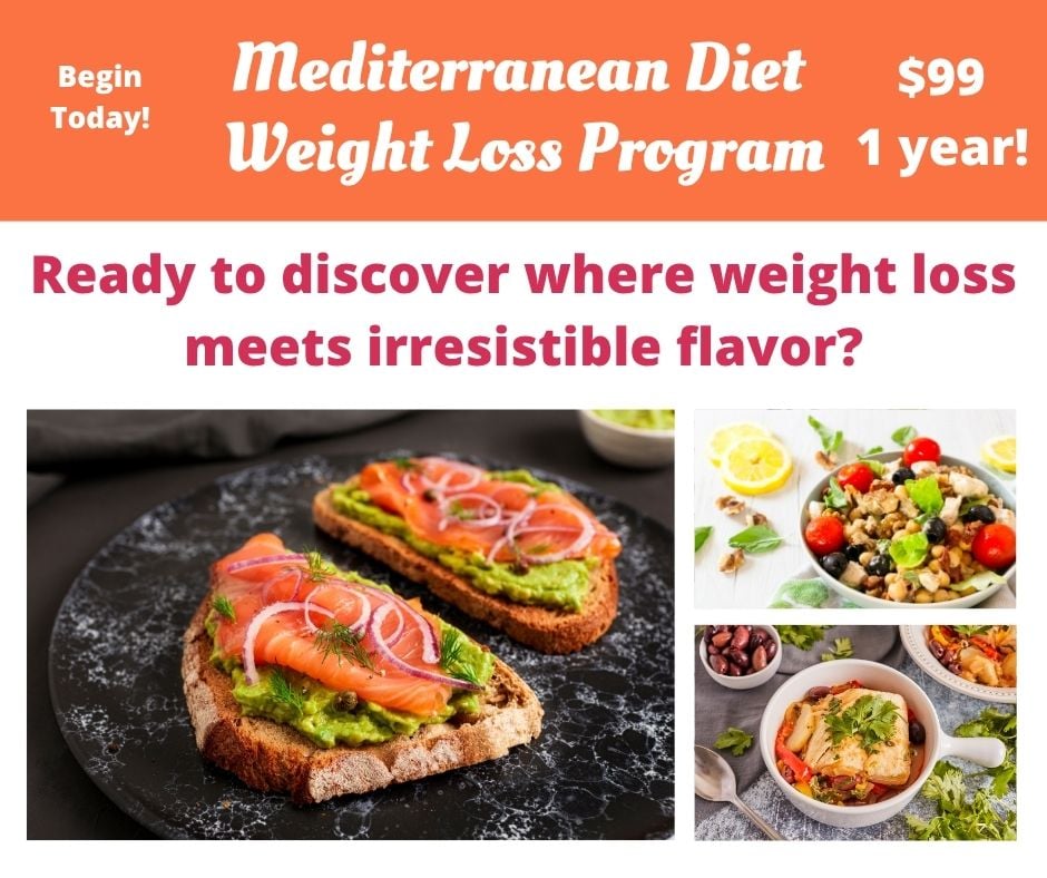 1 Year of Mediterranean Weight Loss Only $99 Join our Mediterranean Diet Portal today and receive 1 year of webinars, meal plans and recipes plus our 10 week Mediterranean Diet Weight Loss Program, 10 Week Mediterranean Way Program and 30 day clean eating program.