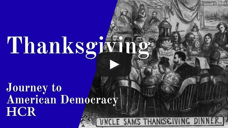 Thanksgiving is the quintessential American holiday…but not for the reasons we generally remember. The Pilgrims and the Wampanoags did indeed share a harvest celebration together at Plymouth in fall 1621, but that moment got forgotten almost immediately, overwritten by the long history of the settlers’ attacks on their Indigenous neighbors. In 1841 a book that reprinted the early diaries and letters from the Plymouth colony recovered the story of that three-day celebration in which ninety Indigenous Americans and the English settlers shared fowl and deer. This story of peace and goodwill among men who by the 1840s were more often enemies than not inspired Sarah Josepha Hale, who edited the popular women’s magazine Godey’s Lady’s Book, to think that a national celebration could ease similar tensions building between the slave-holding South and the free North. She lobbied for legislation to establish a day of national thanksgiving. And then, on April 12, 1861, southern soldiers fired on Fort Sumter, a federal fort in Charleston Harbor, and the meaning of a holiday for giving thanks changed. Southern leaders wanted to destroy the United States of America and create their own country, based not in the traditional American idea that “all men are created equal,” but rather in its opposite: that some men were better than others and had the right to enslave their neighbors. In the 1850s, convinced that society worked best if a few wealthy men ran it, southern leaders had bent the laws of the United States to their benefit, using it to protect enslavement above all. In 1860, northerners elected Abraham Lincoln to the presidency to stop rich southern enslavers from taking over the government and using it to cement their own wealth and power. As soon as he was elected, southern leaders pulled their states out of the Union to set up their own country. After the firing on Fort Sumter, Lincoln and the fledgling Republican Party set out to end the slaveholders’ rebellion. The early years of the war did not go well for the U.S. By the end of 1862, the armies still held, but people on the home front were losing faith. Leaders recognized the need both to acknowledge the suffering and to keep Americans loyal to the cause. In November and December, seventeen state governors declared state thanksgiving holidays. New York governor Edwin Morgan’s widely reprinted proclamation about the holiday reflected that the previous year “is numbered among the dark periods of history, and its sorrowful records are graven on many hearthstones.” But this was nonetheless a time for giving thanks, he wrote, because “the precious blood shed in the cause of our country will hallow and strengthen our love and our reverence for it and its institutions…. Our Government and institutions placed in jeopardy have brought us to a more just appreciation of their value.” The next year, Lincoln got ahead of the state proclamations. On July 15 he declared a national day of Thanksgiving, and the relief in his proclamation was almost palpable. After two years of disasters, the Union army was finally winning. Bloody, yes; battered, yes; but winning. At Gettysburg in early July, Union troops had sent Confederates reeling back southward. Then, on July 4, Vicksburg had finally fallen to U. S. Grant’s army. The military tide was turning. President Lincoln set Thursday, August 6, 1863, for the national day of Thanksgiving. On that day, ministers across the country listed the signal victories of the U.S. Army and Navy in the past year and reassured their congregations that it was only a matter of time until the United States government put down the southern rebellion. Their predictions acknowledged the dead and reinforced the idea that their sacrifice had not been in vain. In October 1863, President Lincoln declared a second national day of Thanksgiving. In the past year, he declared, the nation had been blessed. In the midst of a civil war of unequaled magnitude and severity, he wrote, Americans had maintained their laws and their institutions and had kept foreign countries from meddling with their nation. They had paid for the war as they went, refusing to permit the destruction to wreck the economy. Instead, as they funded the war, they had also advanced farming, industry, mining, and shipping. Immigrants had poured into the country to replace men lost on the battlefield, and the economy was booming. And Lincoln had recently promised that the government would end slavery once and for all. The country, he predicted, “with a large increase of freedom,” would survive, stronger and more prosperous than ever. The president invited Americans “in every part of the United States, and also those who are at sea, and those who are sojourning in foreign lands” to observe the last Thursday of November as a day of Thanksgiving. In 1863, November’s last Thursday fell on the 26th. On November 19, Lincoln delivered an address at the dedication of a national cemetery at Gettysburg, Pennsylvania. He reached back to the Declaration of Independence for the principles on which he called for Americans to rebuild the severed nation: ”Four score and seven years ago our fathers brought forth on this continent, a new nation, conceived in Liberty, and dedicated to the proposition that all men are created equal.” Lincoln urged the crowd to take up the torch those who fought at Gettysburg had laid down. He called for them to “highly resolve that these dead shall not have died in vain—that this nation, under God, shall have a new birth of freedom—and that government of the people, by the people, for the people, shall not perish from the earth.” The following year, Lincoln proclaimed another day of Thanksgiving, this time congratulating Americans that God had favored them not only with immigration but also with the emancipation of formerly enslaved people. “Moreover,” Lincoln wrote, “He has been pleased to animate and i