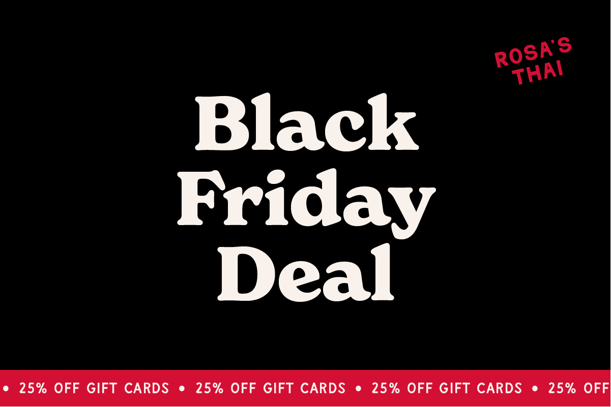This Black Friday, get 25% off all Rosa’s Thai Gift Cards. That means a £100 gift card for just £75.