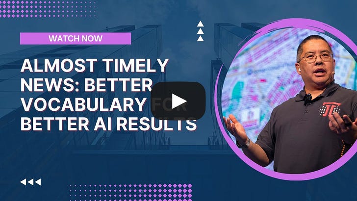 Almost Timely News: 🗞️ Better Vocabulary for Better AI Results (2025-11-30)Language models work better with better languageAlmost Timely News: 🗞️ Better Vocabulary for Better AI Results (2025-11-30) :: View in Browser The Big Plug🚨 Watch my latest keynote, How to Successfully Apply AI in Financial Aid, from MASFAA 2025. Content Authenticity Statement95% of this week’s newsletter was generated by me, the human. You will see 3 AI rendered images in the opening section by Google’s Gemini 3. Learn why this kind of disclosure is a good idea and might be required for anyone doing business in any capacity with the EU in the near future. Watch This Newsletter On YouTube 📺Click here for the video 📺 version of this newsletter on YouTube » Click here for an MP3 audio 🎧 only version » What’s On My Mind: Better Vocabulary for Better AI ResultsThis week, let’s talk vocabulary. Vocabulary is one of the skills that separates great users of AI from users struggling to get good results. Here’s what I mean. Large language models, by their very nature as language models, run on language. The better quality and quantity of language going in, the better the results are coming out. This fundamental principle is what sets apart good from great. Part 1: The Very Basics of Language ModelsTo understand AI and how vocabulary matters, we first have to understand how AI works at least in a simple way. This explanation is what I use to oversimplify AI. It is mathematically incorrect. It is NOT the linear algebra and calculus that makes AI models work. If you want to learn that, you can check out this interesting interactive tutorial that steps through the math of an AI model in great detail. Imagine every word has a constellation of related words around it, like a word cloud. I say “cheese” and you might think “burger”. I say “Apple” and you might say “iPhone”. All language has these relationships, these associations. On top of that, all language has predictable patterns. “God save the Queen” makes sense to us in UK English. “Queen God the save” does not, even though it’s the exact same words. Those patterns - word order, meaning, etc. - can be boiled down into statistics. Every word is related to another word, and when we start putting words together, those associations strengthen. “Cheese” and “Apple” put together have a closer association with “fondue” than they do “burger” because they co-occur more. Imagine as you type a prompt, the word clouds around each individual word start to intersect. The more words you type, the more intersections there are, until it becomes clear exactly what it is you’re writing about. The intersections get very, very specific. Conceptually, this is what’s going on under the hood at a rudimentary level - but it’s close enough to help make the rest of this newsletter make sense. AI models are all about how things relate to each other. Part 2: JargonToday’s AI models can have massive inputs as prompts. ChatGPT and Claude can take an entire business book as a prompt, 75,000 - 90,000 words. Should you do this? No. Could you do this? Yes. I always get a chuckle reading so-called AI experts on LinkedIn urging people to be concise in their prompts for daily business use. That advice was relevant in 2022 when ChatGPT came out and could handle only 3,000 words maximum in a conversation, but times have changed. As a sidebar, that advice IS still relevant if you are building AI agents and systems where you expect thousands of users to use the system. Conciseness matters at that scale because you’re paying for every word in your app’s prompts. But for the average user of ChatGPT, Gemini, or Claude who pays a flat rate per month? Conciseness isn’t nearly as important as context. Gemini can handle even more. You could, if you so chose, put the entire works of William Shakespeare as a prompt, all 800,000 words. Again, should you do that? No. Could you? Yes. So the maxim I’ve been urging people to use since 2023 is: the more relevant, specific words you use, the better your AI results will be. Jargon is your friend. Let’s talk about why. Jargon - those terms that are specific to an industry, the inside baseball language - is incredibly effective with AI because it helps language models understand the domain and context very, very quickly. If I say “paying for college”, that’s fairly generic. It could mean a lot of things in a lot of places. If I say “FAFSA”, the Free Application for Federal Student Aid published and collected by the US Government, that one word immediately conveys that we’re talking about federal student aid for college within the United States. It is incredibly specific. George Bernard Shaw once say, “Every profession is a conspiracy against the laity”. Every profession’s language, though, is the key to unlocking AI’s precision. Remember that AI models fundamentally are about how things relate to each other. If you’re using generic language, there can be a TON of related concepts that aren’t very specific, and thus the output you get from AI is… well, not specific. Take this absolutely awful prompt as an example: