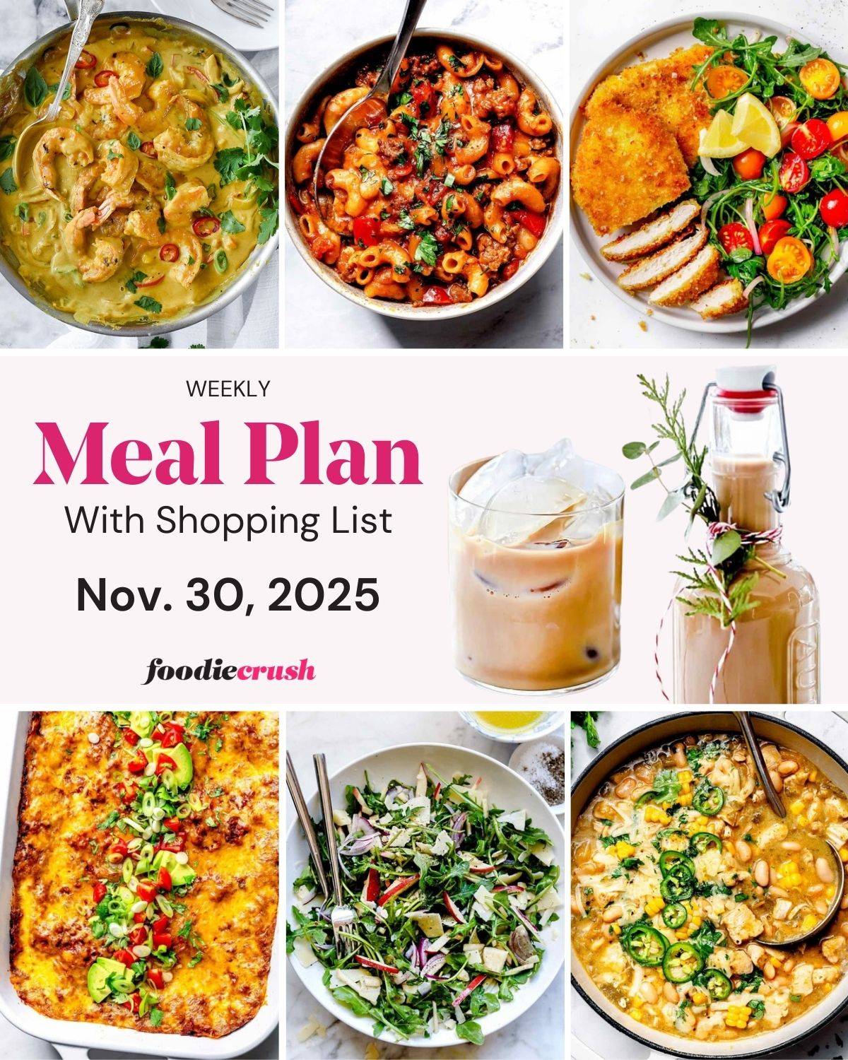 This week we are going on a little international trip and are making crispy chicken Milanese, enchilada casserole, American goulash, white bean chicken chili, and Thai curry with shrimp, mix and match sides and homemade Irish cream!