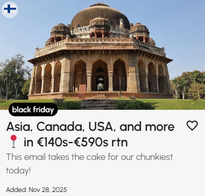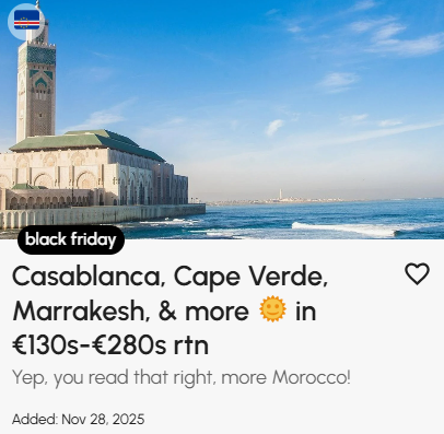 Black Friday has been wild! Prices have dropped, and Takeoff members have been snapping up some unbelievable Flights. With our €1 for 3 months offer ending tomorrow night (December 1st), we wanted to send you a quick roundup of the standout Black Friday Flights we've discovered this past week.