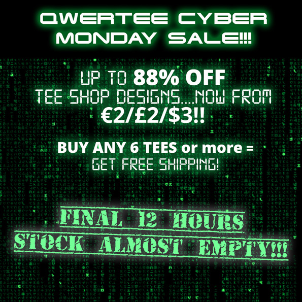 Our absolute favourite time of the year is coming to a close but we couldn't help but extend our Cyber Monday sale just a little bit to offer a few more INCREDIBLE deals to you all (because we love you)! Our tees are confirmed to be the perfect Christmas present for your loved ones (or even more importantly, yourself) so take another look at the VERY LAST of our stock at £4/€5/$6 with a few tees as low as £2/€2/$3!!! These will not last long ESPECIALLY because if you order 6 tees or more you get FREE SHIPPING and FREE UGLY CHRISTMAS SOCKS!!