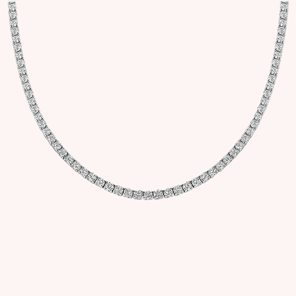 13.31 ctw 14K White Gold 17 inch Basket 4 Prong Tennis Necklace