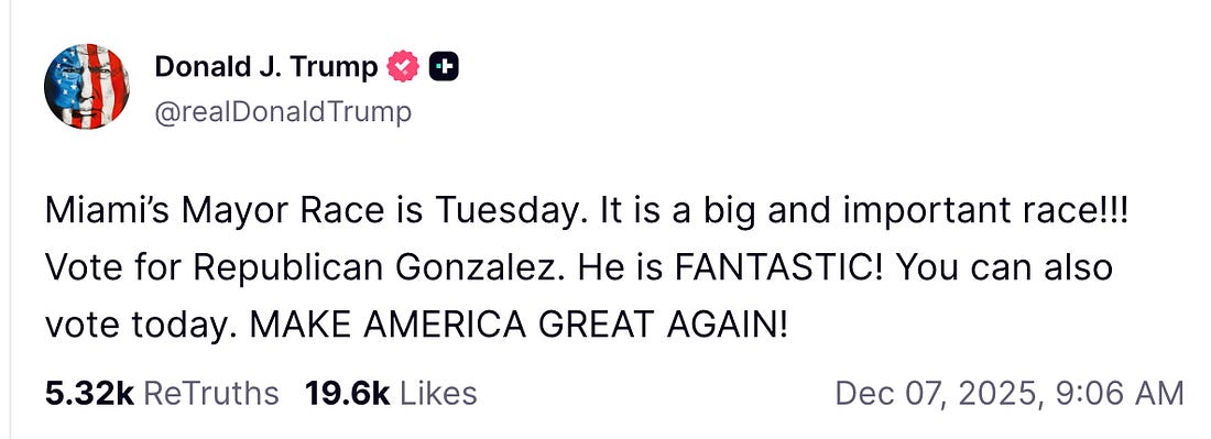 The new Mayor of Miami, Florida, is a Democrat. And a woman. In 2021, Republican Francis Suarez was reelected. He won with 78.6% of the vote. Tonight, Ellen Higgins became the first Democrat elected mayor in the city in almost 30 years. Unofficial results from tonight’s election show she garnered 59% of the vote to Republican Emilio Gonzalez’s nearly 41%. That’s a ginormous swing. Although the race is technically nonpartisan, it attracted national attention this year. It’s one in a series of off-year elections being viewed as bellwethers for the midterms. Higgins’ big win won’t make Donald Trump happy. For one thing, he put some skin in the game for her opponent. A Trump endorsement is no longer a magic touch, more like a kiss of death. For another thing, Higgins is a woman. And in case you haven’t noticed, the president has real problems with women. As in, he doesn’t like them, and he can’t stand it when they best him. There are, of course, the nasty comments he sneered at Hillary Clinton and Kamala Harris in their respective races. And the firing of Federal Reserve Governor Lisa Cook combined with the attempt to smear her name with allegations of mortgage fraud, as well as the prosecution of New York Attorney General Tish James, who successfully took on Trump’s company in court. They are both Black women. Trump spews abuse at his perceived enemies, but reserves the worst of it for women. Just ask E. Jean Carroll, whom he called a liar and attempted to belittle by saying she wasn’t his type—even as he misidentified a photo of her as his second wife, Marla Maples, during a deposition. Ms. Magazine tried to explain Trump’s history of demeaning and silencing women like this in January of this year: “Trump employs personal attacks to discredit women critics, avoiding accountability while amplifying misogyny.” The last few weeks have been full of presidential misogyny directed toward journalists. He’s engaged in the kind of waspish retorts to legitimate questions that should raise eyebrows in political settings, but of course, this is Donald Trump, and the malicious, hateful treatment of women is already baked in. Most people barely raise an eyebrow. On Saturday, Trump called CNN’s Kaitlan Collins “stupid and nasty” on Truth Social because she had the temerity to question him about cost overruns with his ridiculous White House ballroom project. In other words, the president of the United States heaped unmerited criticism on a female journalist for simply trying to do her job. We discussed Trump’s effort to silence Bloomberg reporter Catherine Lucey last month, cutting her off by saying “Quiet, Piggy!” as she pushed him for details on his relationship with Jeffrey Epstein. Then there was Trump’s press conference with Saudi Crown Prince Mohammed bin Salman just a few days later, when he tried to browbeat ABC’s Mary Bruce for asking a question about the murder of Washington Post journalist Jamal Khashoggi. The assessment of the intelligence community during Trump’s first term in office was that MBS was complicit. For asking an important, direct question, Trump launched the epithets “terrible person” and “fake news” at Bruce. He lectured her about “her attitude,” like she was a schoolgirl, not an experienced journalist, and said, “I think you are a terrible reporter. It’s the way you ask these questions.” Next up for abuse at Trump’s hands was Katie Rogers, who wrote a piece about Trump for the New York Times, headlined: “Shorter Days, Signs of Fatigue: Trump Faces Realities of Aging in Office.” He didn’t respond to it very well and took to Truth Social again, where he raged that she was “a third-rate reporter who is ugly, both inside and out.” Just a couple of days later, it was CBS News reporter Nancy Cordes’ turn. After the tragic National Guard shooting in Washington, D.C., she tried to fact check Trump when he lied and said the Biden administration failed to vet Afghan nationals who entered the U.S., as that country was falling to the Taliban. “Are you stupid?” he said to her. “Are you a stupid person?” None of this is new, of course. Donald Trump has a problem with women. And our country has a problem too—Americans let him get away with it. Before he was elected for the first time, the country saw the Access Hollywood Tape, where he brags about grabbing women and talks crudely about his effort to seduce a woman he wasn’t married to by taking her furniture shopping. Americans knew when they elected him the first time. And before that, in April 2015, Trump retweeted a supposed joke: “If Hillary Clinton can’t satisfy her husband what makes her think she can satisfy America #MakeAmericaGreatAgain.” He later deleted the post. After his poor debate performance, Trump seemed to insinuate that Fox News Channel anchor Megyn Kelly was hard on him because she was menstruating. “You could see there was blood coming out of her eyes. Blood coming out of her wherever,” he said in an interview with CNN in August 2015. In a September 2015 interview with Rolling Stone, he said this about his Republican primary opponent Carly Fiorina: “Look at that face! Would anyone vote for that? Can you imagine that, the face of our next president? I mean, she’s a woman, and I’m not s’posedta say bad things, but really, folks, come on. Are we serious?” There are no excuses. Too many Americans were okay with it, or at least willing to overlook it. When we discussed the “Quiet, Piggy!” incident, I wrote: “It tells you all you need to know about this president’s attitude toward women. Of course, that hasn’t been in doubt since we saw him on tape saying, ‘Grab them by the p*ssy.’ He’s called a stream of women who stood up to him, like Hillary Clinton, Nancy Pelosi, and Kamala Harris, ‘nasty women.’ In 2014, Trump called New York Times columnist Gail Collins ‘ |