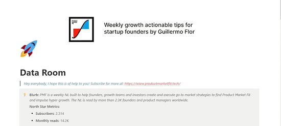 The dataroom template by Guillermo Flor: ... Continue reading this post for free in the Substack app |