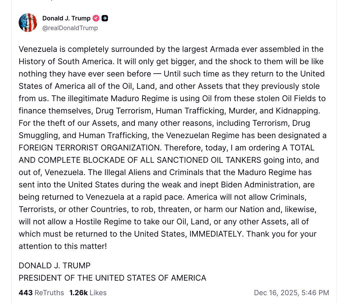 1. War DrumsOne of the buried nuggets in Vanity Fair’s Susie Wiles epic was her understanding that Trump is seeking regime change in Venezuela: