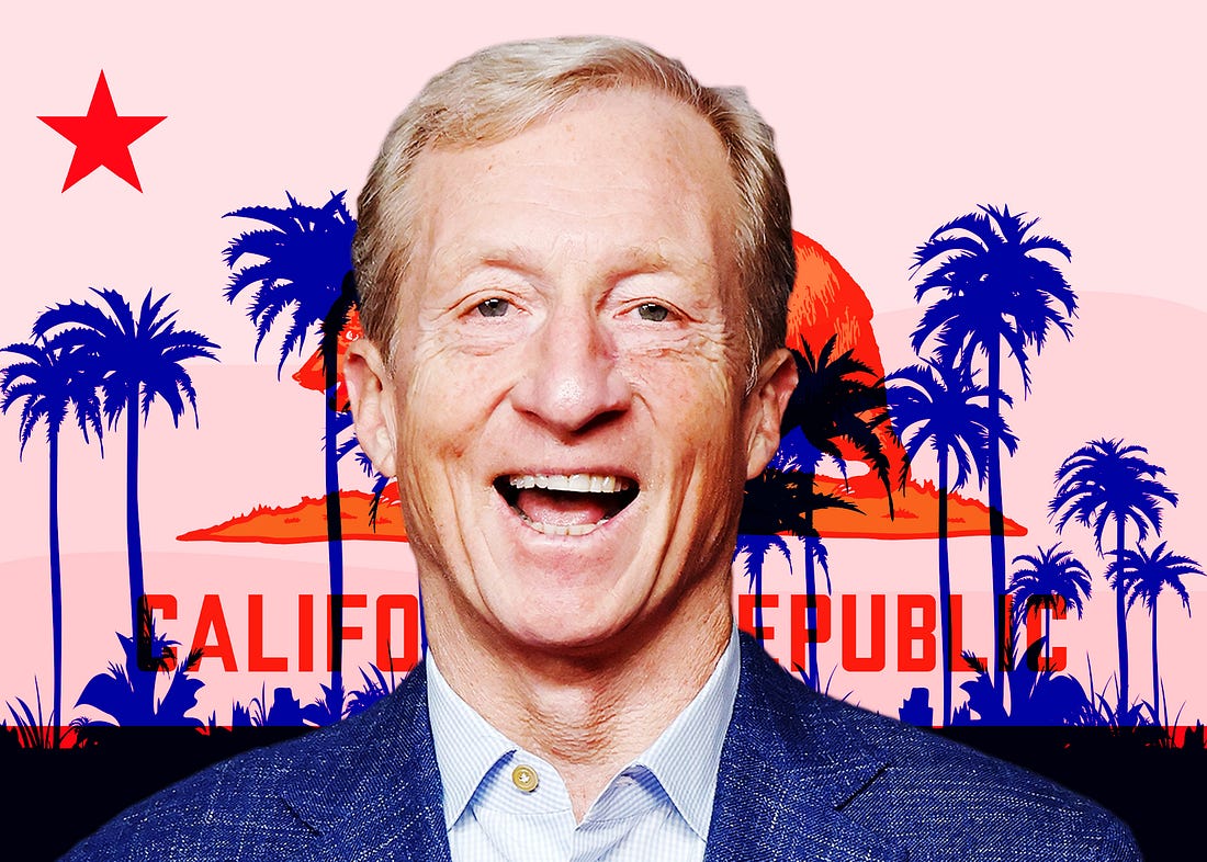 Hi, y’all. Welcome back to The Opposition. Earlier this year, many California Democratic officials assumed Kamala Harris would run for governor in 2026 to succeed term-limited Gavin Newsom. When she announced over the summer that she would pass, it caught the political class by surprise. (She’s instead been on a months-long book tour, potentially laying the groundwork for another presidential bid.) Then, just a few weeks ago, Sen. Alex Padilla said he would not run for governor, either. Meanwhile, Katie Porter—who once seemed like she could clear the primary field—has struggled to recover after she threatened to walk out of an interview with a CBS reporter and a video leaked of her yelling at a staffer. All of that to say, the California governor’s race is in chaos. Without a formidable frontrunner to rally around, seemingly everyone in the state’s Democratic party is shooting their shot. (Steph, we’re waiting on you!) Today’s edition is about one of those newly announced candidates who’s hoping that his moment has finally arrived. As this race heats up—and as the other 2026 primaries get underway across the country—the best way to stay fully informed is with the kinds of scoops and sharp analysis my colleagues and I at The Bulwark will be delivering, and the kinds of conversations you’ll find in our chats and comments sections. Sign up for a Bulwark+ membership today and your first 30 days are free: We’d love to have you as part of our community! –Lauren Tales of a Billionaire-Populist Wannabe GovernorTom Steyer has hired Zohran Mamdani’s ad firm to help get him elected in California. Can they pull it off?LONGTIME DEMOCRATIC DONOR TOM STEYER has worn so many hats in his life—businessman, environmentalist, presidential candidate—that you’d think at the tender age of 68 he would be steely, hardened by the challenges and opportunities the world has thrown at him. And yet, as he sat on the other side of a FaceTime conversation with me this week, the man who is now running to be governor of California started—I swear to you—crying. Not the type of tears that careen down the lines of one’s face. But the swelling-of-the-eyes variety; the kind that makes the voice quiver but not stumble. Steyer was talking about his belief in the promise of California, a promise all too often belied by corporations that have come to the state and taken advantage of regular folks. “The working people, the poor people, and the illiterate people of this country have built this system at the risk of their lives,” he said, just as the water works started up. The phone he was holding got a bit wobbly (making me, the interviewer, slightly queasy as his camera jerked around), and his voice approached a whisper. I got the sense that he was working hard to hold back bigger sobs. “Truthfully, it’s like, I think I’m just a lucky guy in many ways,” he explained when I asked why he was getting so emotional. The moment felt genuine. But I’m not a resident of California. And the success or failure of Steyer’s candidacy will depend, to a large degree, on whether voters there believe that these sentiments come from a sincere place. Though he is a legitimate crier (at least according to him), this could prove a hard sell. That’s because the public perception of Steyer is that he’s a prominent member of the elite Democratic donor class. A former hedge-fund manager, he has hosted presidents at his house in San Francisco’s wealthy Sea Cliff neighborhood, which overlooks the ocean and has a stunning view of the Golden Gate Bridge. He owns an 1,800-acre cattle ranch on the California coast and a house on Lake Tahoe, where President Joe Biden and the first family stayed during a vacation in 2023. Forbes estimates his net worth at a cool $2 billion. At a time when the Democratic party is leaning into a populist political message, that’s not exactly the ideal profile. Yet in November, Steyer announced his campaign in a two-minute video slamming “monopolistic” utility companies and the “richest people in America” who “think that they earned everything themselves.” (“Bullshit, man!”) He vowed to make “corporations pay their fair share again” and pitched himself as an outsider candidate who would get money out of politics and deliver real results. When I asked him whether his own life and wealth could complicate this message—and, frankly, whether he thinks billionaires like him should exist—he had a ready response. “I don’t believe in putting a ceiling on people’s ambitions,” Steyer said. “But let me say this, too: This is an amazing place to come—as I say, best place to start a business, best place to grow a business. But if you come here, you’re part of a community, you’re part of a state, you’re part of something that has been built by working people for decades. . . . Sky’s the limit, but I am absolutely committed to protecting the interest of working Californians from people who want to rip us off.” Over the decades, plenty of rich Democrats have convinced skeptical voters to look beyond the tensions that exist between their personal wealth and their personal brand as an authentic outsider populist. (Franklin Delano Roosevelt comes quickly to mind.) Steyer thinks he can do the same. While he is not favored to advance beyond the June primary, California’s nonpartisan “jungle primary” system—in which the top two candidates regardless of party affiliation advance—is unpredictable. That’s especially true this election cycle. At least ten candidates have announced gubernatorial bids so far, and there’s not a clear Democratic frontrunner. By and large, candidates have struggled to raise the money needed to run a competitive statewide race. Steyer’s wealth, at least on this front, creates an obvious advantage. Unlike the others, he can bankroll his own race. “If it really only takes |