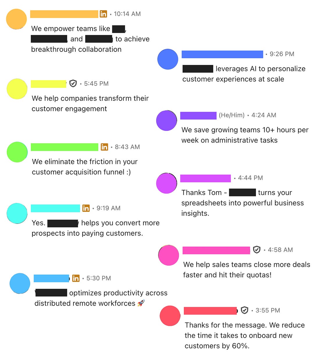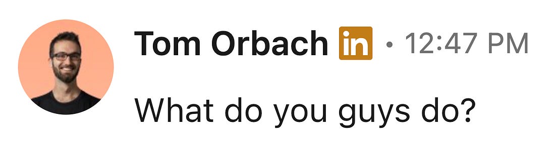 I receive tons of cold DMs on LinkedIn every day. So I ran a little experiment: I sent this question to 20+ people who had just pitched me. Their responses were furiously bad: Every response made my brain hurt. People need to know what you ARE before they care what you SOLVEWhen someone can’t figure out your category → they stop listening. They’re stuck on “What IS this thing?” and never get to “Do I want this thing?” Let’s get back to my little experiment: