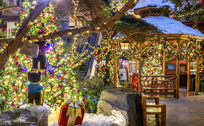 Sam's Town's Mystic Falls Park is decked out for the holidays and features a nine-minute laser show with classic holiday songs, animated teddy bears and more than 26,000 lights.