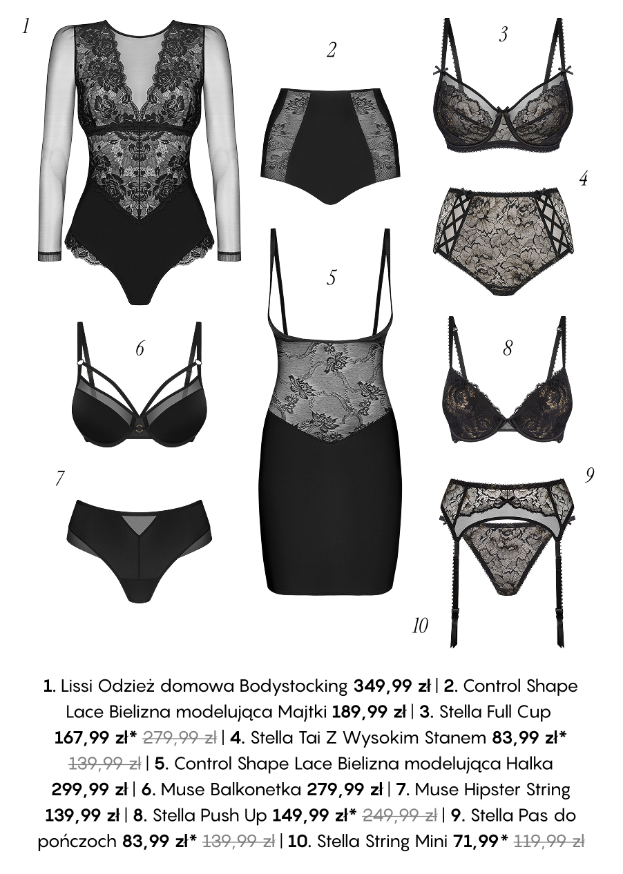 Zacznij nowy rok w stylu z bielizną stworzoną, by się wyróżniać. Od blasku Stelli, przez elegancję Lissi, po odwagę Muse – to elementy, które chcesz mieć pod swoją imprezową stylizacją. Dodaj bieliznę modelującą, pończochy i odrobinę blasku – i jesteś gotowa.