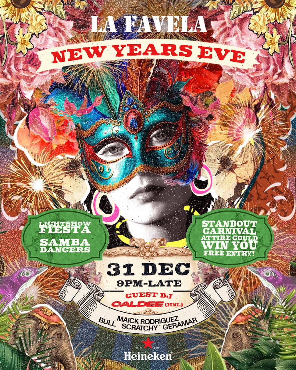 The final night of 2025 is arriving in full carnival color, and La Favela is ready for a celebration that lights up every corner.