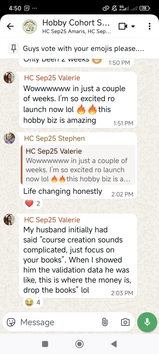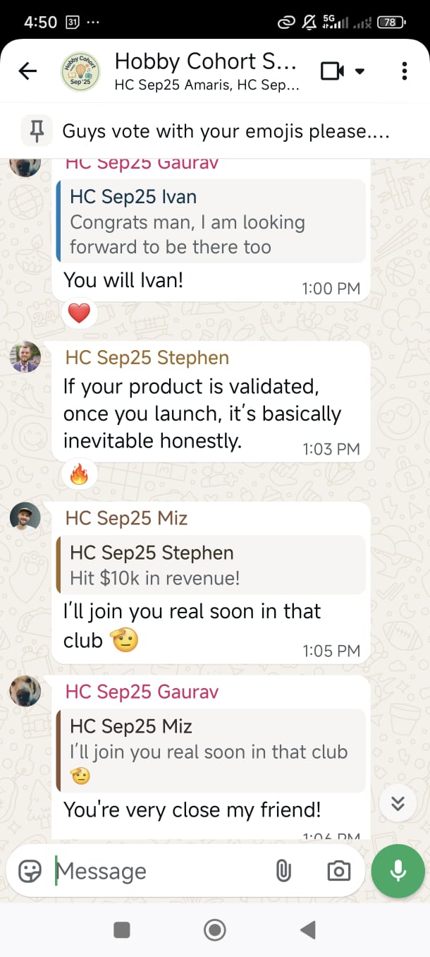 Gerson (one of the students of the last cohort) had TWO products that were already READY (after validation) that he was selling DURING the cohort. Yes - while the cohort was going on.