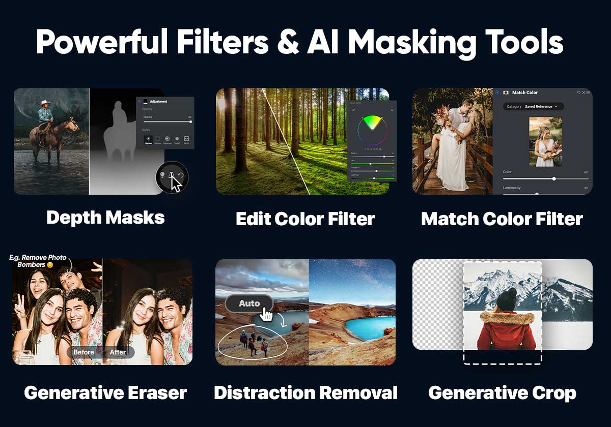 No subscription. No trial countdown. Just a powerful creative tool you can keep. It works as a standalone application on Mac or Windows and as a plugin for Adobe Photoshop, Lightroom, and other editors.