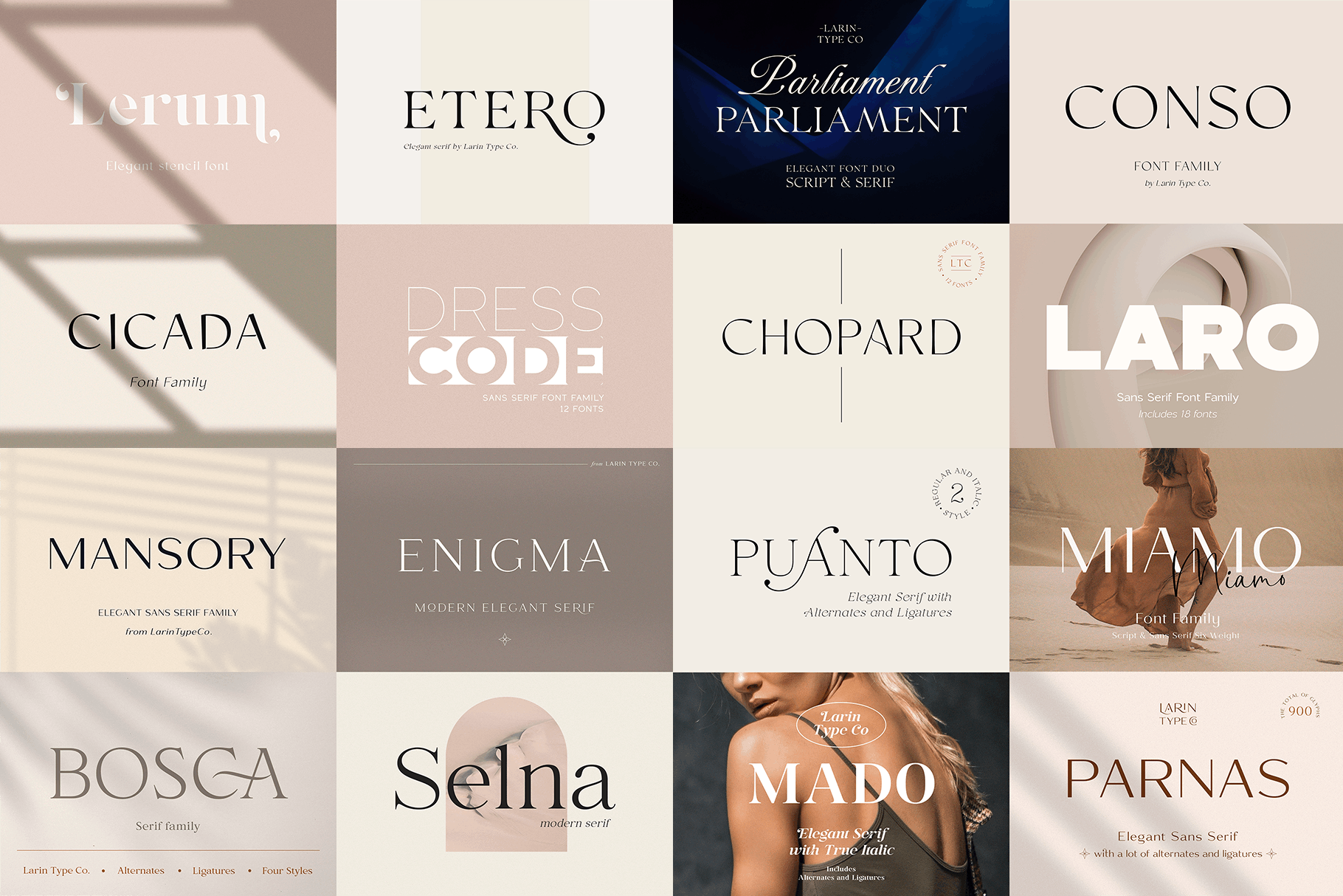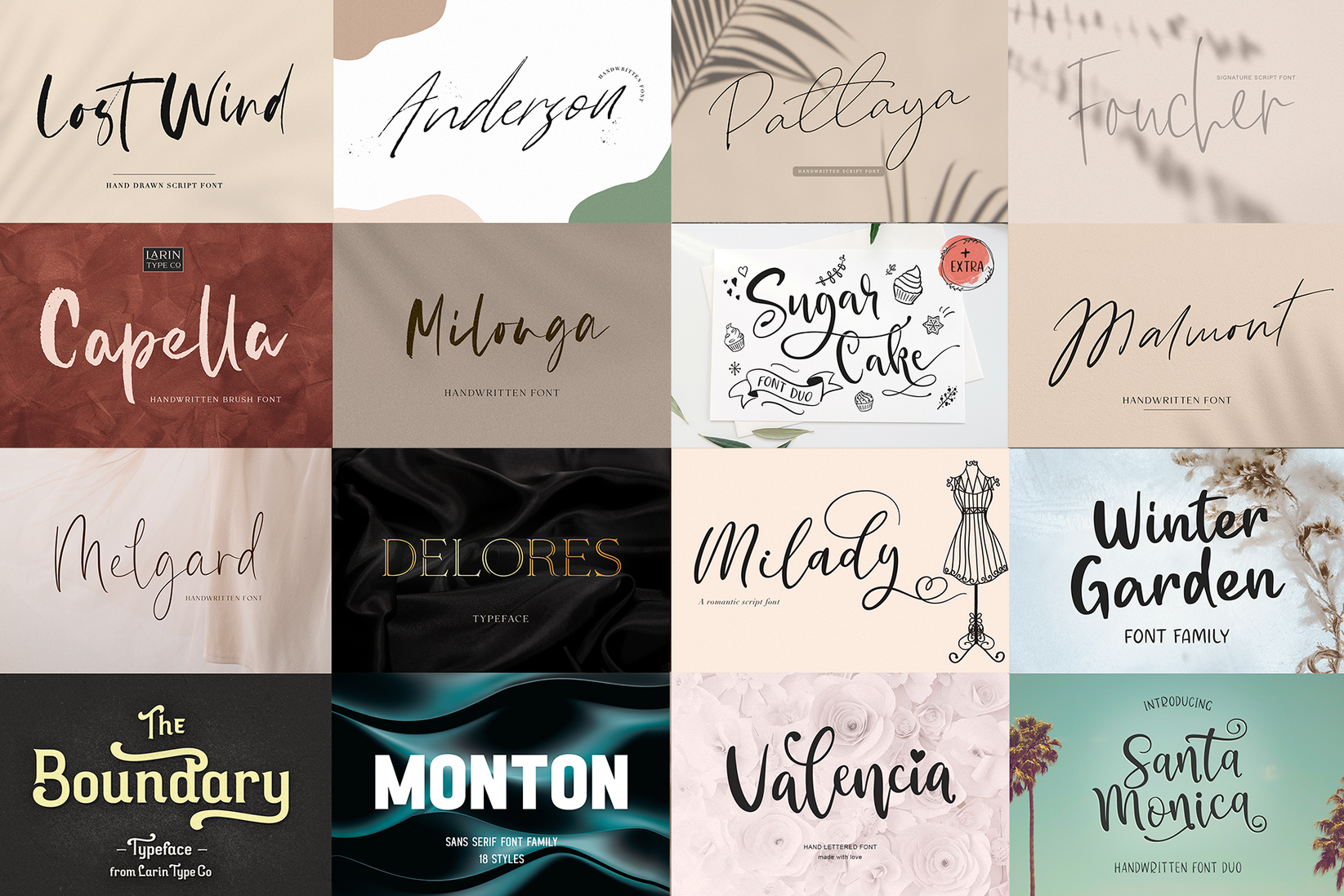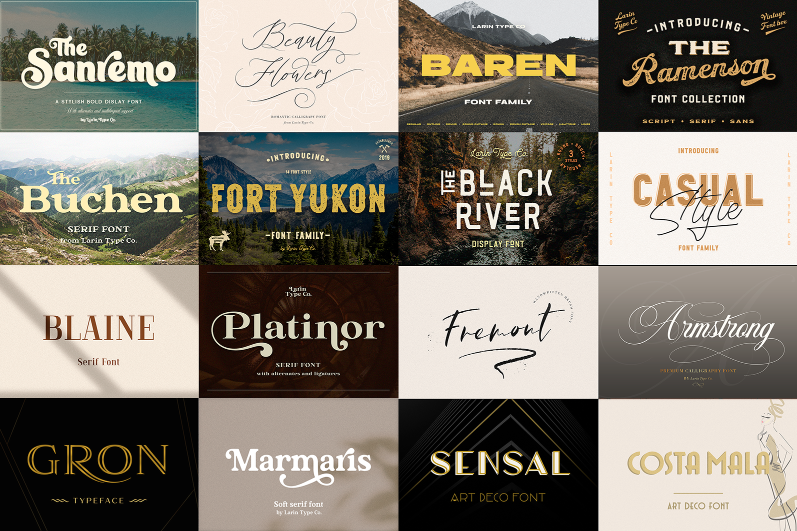 The Exclusive Font Bundle from Larin Type Co. features this foundry's entire collection of products. Enjoy everything from fun children's fonts to vintage and elegant modern fonts.