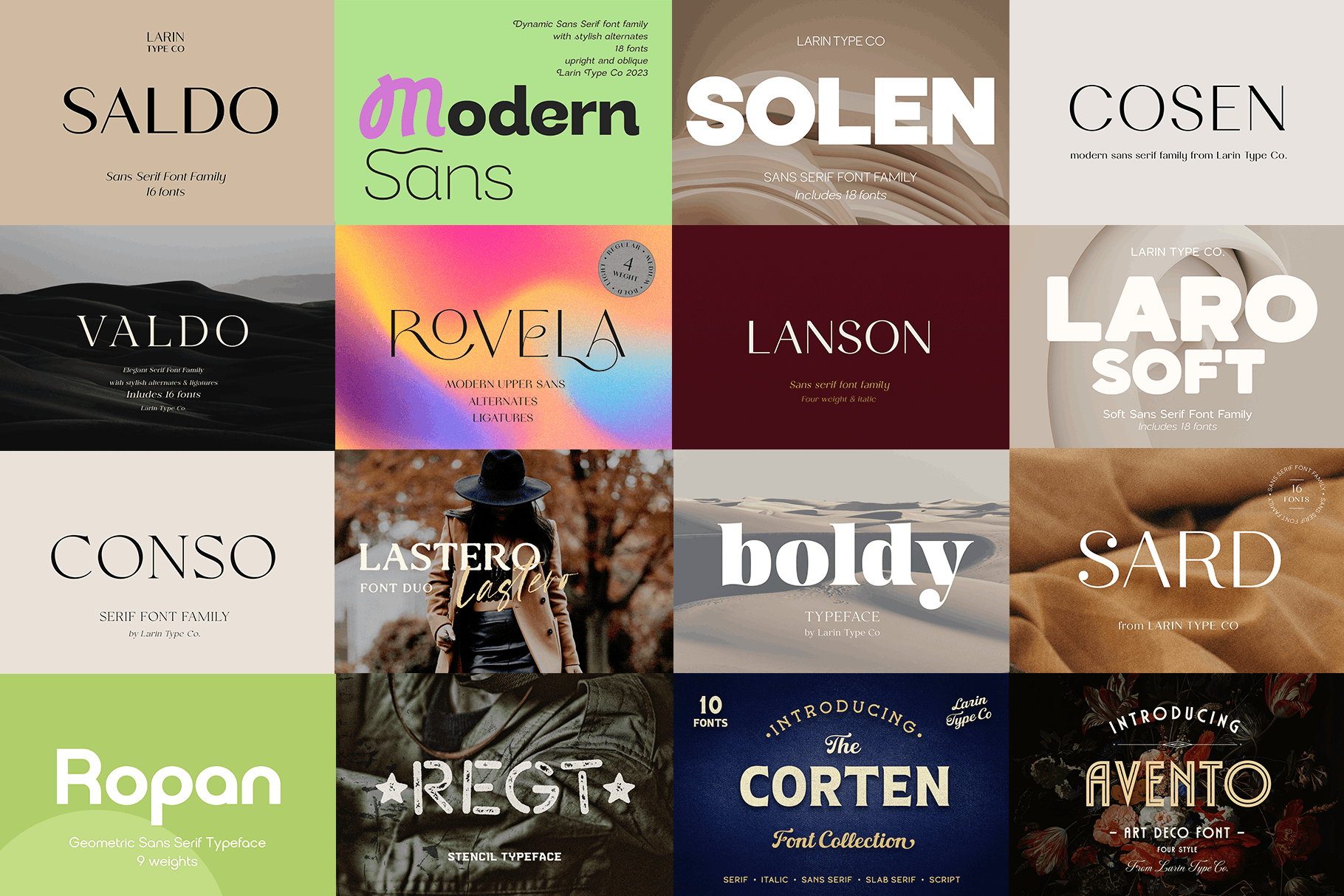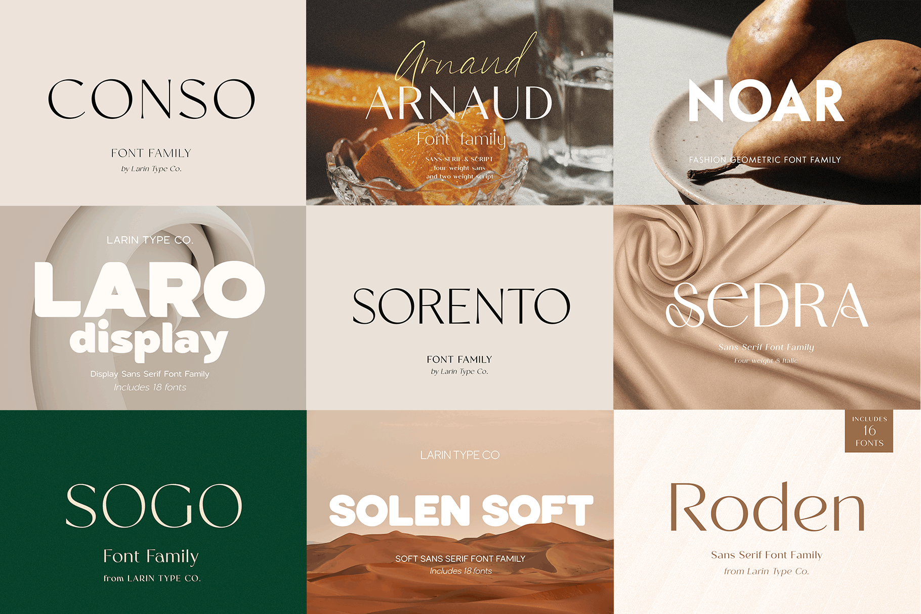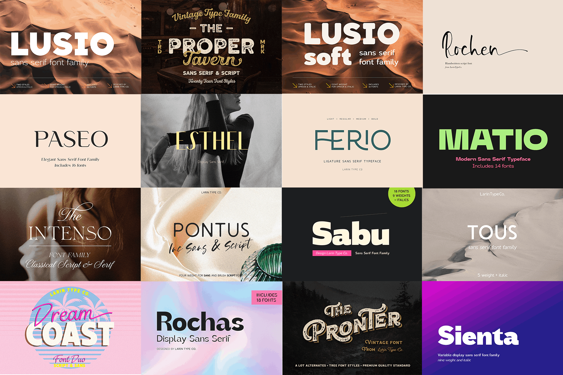The Exclusive Font Bundle from Larin Type Co. features this foundry's entire collection of products. Enjoy everything from fun children's fonts to vintage and elegant modern fonts.