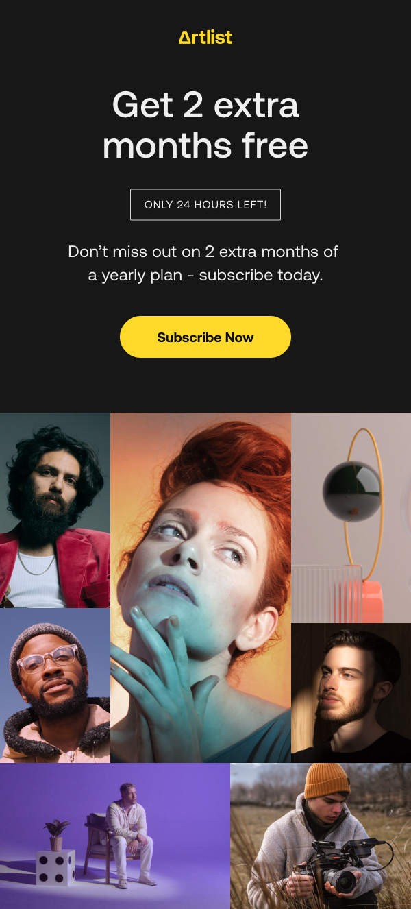 24 hours left to get 2 free months of Artlist