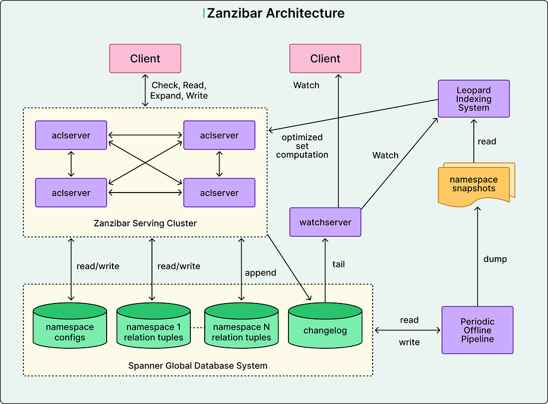 WorkOS Pipes: Ship Third-Party Integrations Without Rebuilding OAuth (Sponsored)Connecting user accounts to third-party APIs always comes with the same plumbing: OAuth flows, token storage, refresh logic, and provider-specific quirks. Sometime before 2019, Google built a system that manages permissions for billions of users while maintaining both correctness and speed. When you share a Google Doc with a colleague or make a YouTube video private, a complex system works behind the scenes to ensure that only the right people can access the content. That system is Zanzibar, Google’s global authorization infrastructure that handles over 10 million permission checks every second across services like Drive, YouTube, Photos, Calendar, and Maps. In this article, we will look at the high-level architecture of Zanzibar and understand the valuable lessons it provides for building large-scale systems, particularly around the challenges of distributed authorization. See the diagram below that shows the high-level architecture of Zanzibar. Disclaimer: This post is based on publicly shared details from the Google Engineering Team. Please comment if you notice any inaccuracies. The Core Problem: Authorization at ScaleAuthorization answers a simple question: Can this particular user access this particular resource? For a small application with a few users, checking permissions is straightforward. We might store a list of allowed users for each document and check if the requesting user is on that list. The challenge multiplies at Google’s scale. For reference, Zanzibar stores over two trillion permission records and serves them from dozens of data centers worldwide. A typical user action might trigger tens or hundreds of permission checks. When searching for an artifact in Google Drive, the system must verify your access to every result before displaying it. Any delay in these checks directly impacts user experience. Beyond scale, authorization systems also face a critical correctness problem that Google calls the “new enemy” problem. Consider the scenario where we remove someone from a document’s access list, then add new content to that document. If the system uses stale permission data, the person who was just removed might still see the new content. This happens when the system doesn’t properly track the order in which you made changes. Zanzibar solves these challenges through three key architectural decisions: