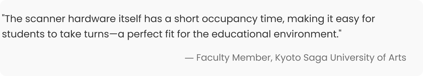 While the MetroY Pro requires a PC connection, it stands out for its ability to save projects after scanning and continue editing on a different computer. Faculty members shared positive feedback, noting that "the MetroY Pro's efficient workflow is ideal for use by a large number of students."