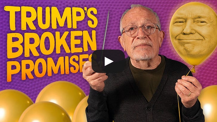 Friends, The Trump regime started the week by telling lies about Alex Pretti’s murder. Now, Trump has pivoted back to telling lies about the economy in order to change the subject. Trump lies like other humans breathe. Trump’s year back in office has been filled with lies and broken promises. We’re in the gravitational pull of the midterm elections, so it’s not too early to examine what he promised and how he’s delivered on them. In this week’s video, I take a look at Trump’s 10 biggest campaign promises and what’s happened since he took office. I doubt you need convincing, but you might share the video with your Trumpish “Uncle Bob” or anyone else still under the illusion that he’s doing what he said he would. Are you feeling the “New Golden Age?” Are you enjoying those home and energy prices cut “in half?” How about the satisfaction of having peace throughout the world? And what of his promise to release ALL the Epstein files? There are so many promises to talk about, you’ll never guess the one promise he actually kept. Thanks for watching. So glad you can be here today. Please consider becoming a paid subscriber of this community so we can do even more. |