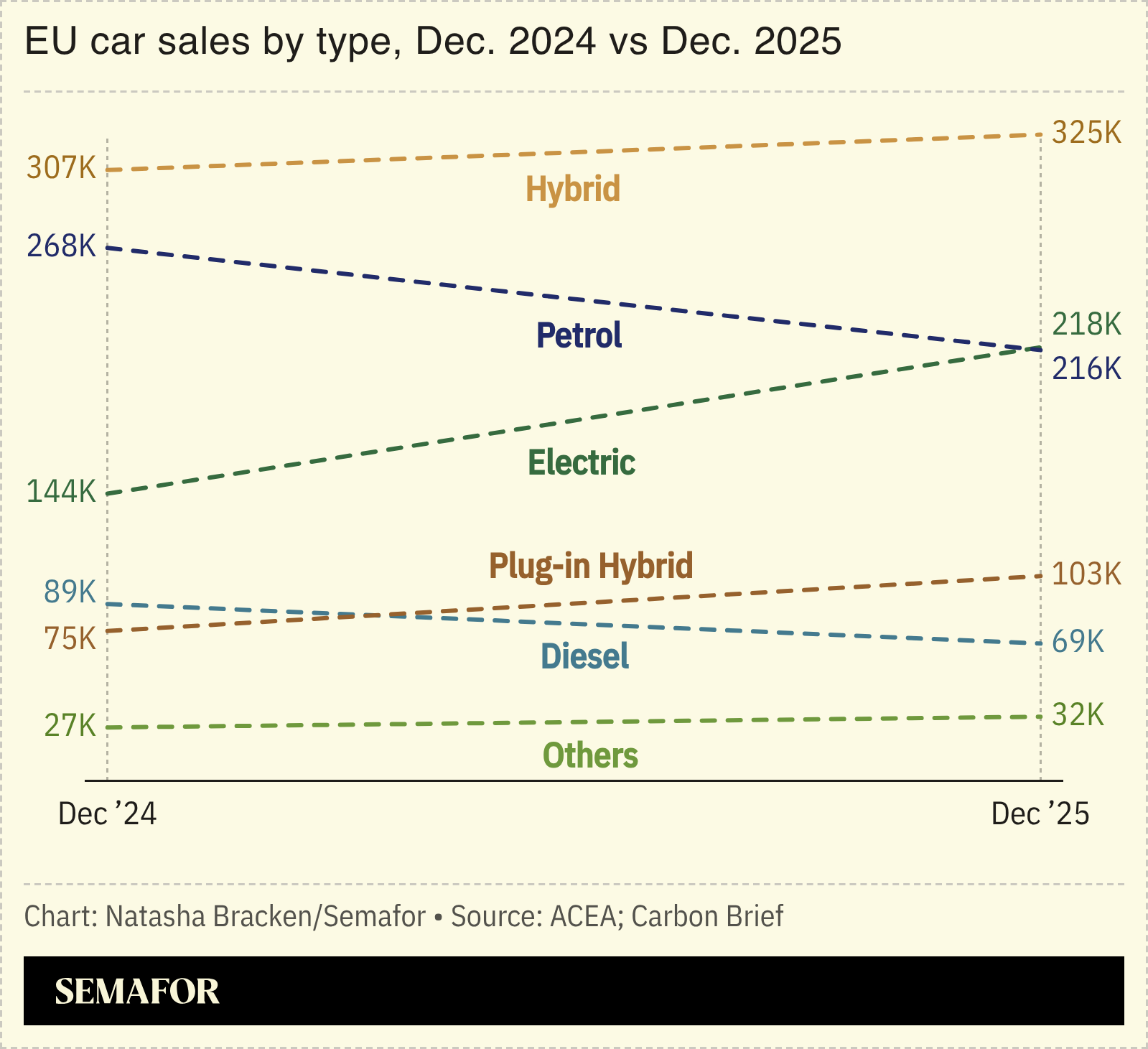 - EVs outpace petrol in Europe
