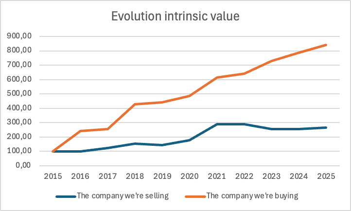 If we compare the evolution of the intrinsic value for both companies, we get the following: Hopefully I convinced you now that the company we’re buying is a better company than the one we’re selling. Now let’s dive into the names... Subscribe to Compounding Quality to unlock the rest. |