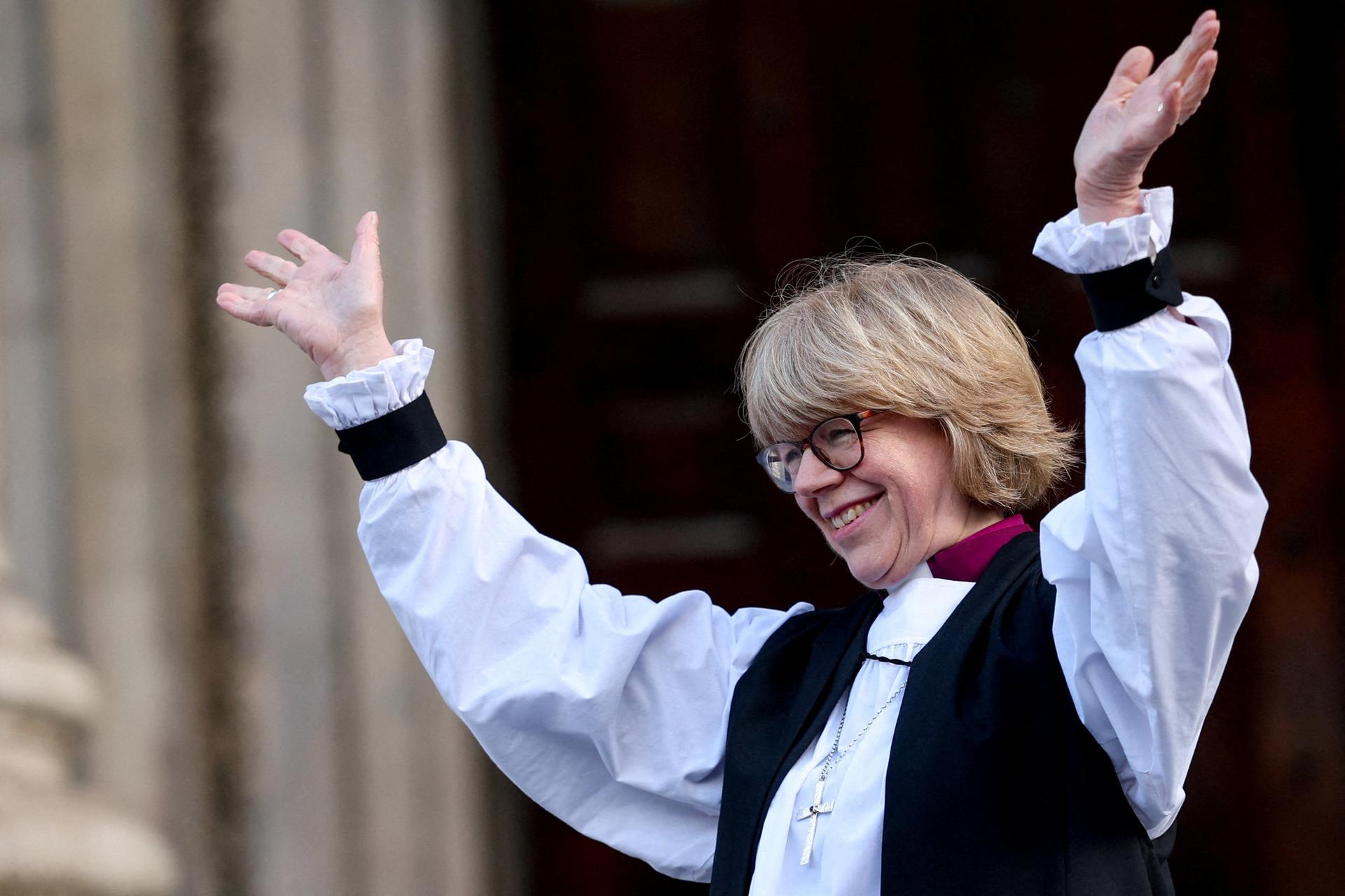 Britain's Archbishop of Canterbury Sarah Mullally gestures after the service of confirmation of her election at St Paul’s Cathedral in London, Britain. REUTERS/Isabel Infantes |