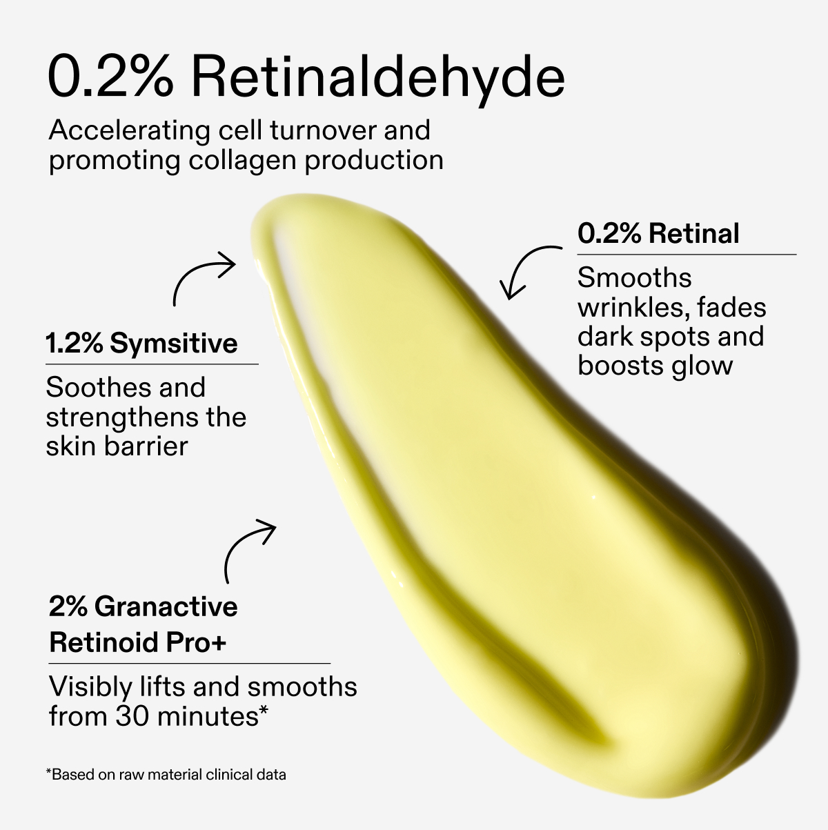 Delivering results up to 11x faster than standard retinol*, our Advanced 0.2% Retinal Serum is clinically proven to target all 5 visible signs of ageing. The results speak for themselves.