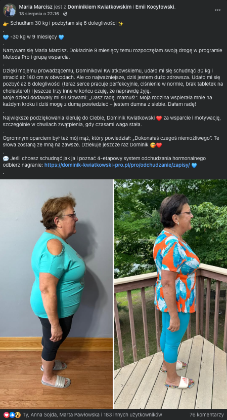 Efekt Marii? - 30 kg w 9 miesięcy. - 140 cm w obwodach.