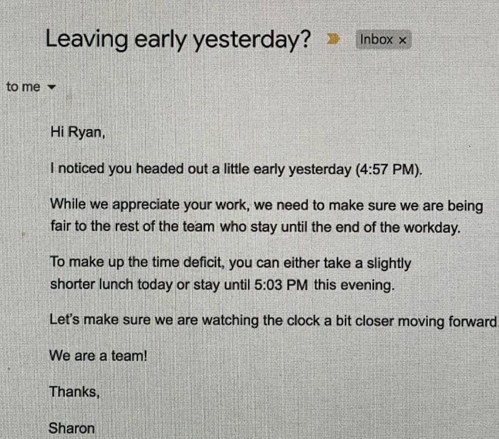 Demanding they make up 3 minutes by either skipping lunch or staying late.