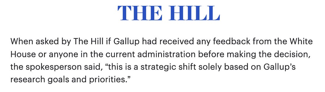 After 88 years, Gallup announced Wednesday that it will no longer track presidential approval ratings. The decision comes as Trump is receiving some of the lowest ratings in the survey’s history. The last Gallup poll, taken in December, found that just 36% of Americans approved of Trump. Notably, Gallup makes money by selling consulting services. One of its biggest clients is the federal government. Did Gallup cancel the presidential approval poll to preserve its business with the Trump administration? Asked whether it had received any complaints about its polls from the White House, Gallup did not directly answer. At the very least, Gallup’s action is an example of anticipatory obedience. It is changing the way it does business to avoid trouble. Popular Information will not obey. We will continue to report the truth, whether or not it makes important people upset. If you value this approach, we need your help. You can support our work by upgrading to a paid subscription. Prediction markets, including Kalshi and Polymarket, are exploding in popularity. Kalshi alone saw over $1 billion in trading volume on Super Bowl Sunday. Remarkably, more than $100 million was wagered on what song Bad Bunny would play first during his halftime show. That kind of market has raised concerns about insider trading. Not only is Bad Bunny in control of which song is played, but this information is also known in advance by dancers, musicians, crew, and anyone who happened to be around during rehearsals. This is likely why, just before the big game, Kalshi CEO Tarek Mansour announced a laundry list of efforts to crack down on insider trading. This included partnering with a forensics lab, hiring an intelligence advisor, setting up a “surveillance audit committee,” and investing in “behavior monitoring and pattern recognition tools.” Mansour said that “insider trading erodes trust” and when “people believe a market is unfair, they stop trading.” Serious violations, Mansour said, would be referred to the Commodity Futures Trading Commission (CFTC) for criminal prosecution. One issue, however, is that the CFTC is a relatively small government agency with a budget of less than $400 million and limited experience prosecuting insider trading. More fundamentally, all of these steps depend on a functional definition of insider trading for prediction markets. Mansour appeared on CNBC on Tuesday and was pressed on what constituted insider information in a market like Bad Bunny’s first Super Bowl halftime song. Andrew Ross Sorkin asked if Kalshi would consider it insider trading if one of Bad Bunny’s dancers, who knew the first song in advance, bet in the market. Mansour said that the same rules applied to Kalshi bets as the stock market. He said that anyone who trades on “material non-public information” on Kalshi violates insider trading rules. The hosts, however, point out that executives of publicly traded companies have a legal obligation not to share financially material non-public information outside of regular public disclosures. Bad Bunny and his employees do not face the same legal constraints and have nothing to do with the market set up by Kalshi. Mansour offered a pat response: “Either this information can be public, and that’s okay, or it’s information that cannot be public beforehand.” Mansour appears to be leaning on the CFTC’s more lenient stance toward insider trading. Under CFTC rules, trading on non-public information is permitted, as long as you didn’t obtain the information through fraudulent or illegal means: