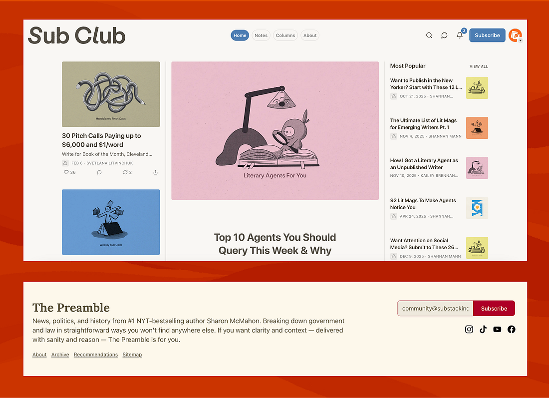 Wendy MacNaughton, the author of DrawTogether, used these updates to create a homepage that’s both beautiful and easy to navigate. Drop Site News uses the custom layouts to add social links and highlight work from their contributors. For more ideas, take a look at Sub Club’s distinctive logo placement and The Preamble’s expert use of the footer. Recipe embeds (beta)Recipe embeds are now available in beta on Substack, offering a clean, structured way to publish recipes inside a post. If you’ve ever shared a recipe as plain text, you know it’s not ideal: ingredients and steps can get buried, readers have to scroll back and forth while cooking, and recipes aren’t always surfaced well by search engines. Recipe embeds solve these issues by giving recipes a dedicated format that’s easy to follow, save for later, and built for discovery. To add a recipe embed to an upcoming post, open the post editor and choose More → Recipe. Recipe embeds can include: