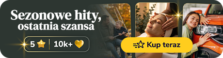 | | Orava Snow S | | Zimowy raj: całodniowe skipassy dla każdego w Orava Snow na Słowacji | | | | |  | | Piękno i Estetyka | | Pakiety zabiegów na twarz: oczyszczanie wodorowe, Kobido i więcej | | 170,00 zł Od 99,99 zł | | 79,99 zł z kodem PROMO, Ważny do 16.2 | | | | | | |  | | Multikino | | Zestawy barowe: napój z popcornem lub nachosami dla 1 lub 2 osób | Wiele lokalizacji 4,77 (4 354) | | | | |  | | My Secret Beauty Zone | | Regeneracja i relaks: masaż ciała miodem, masaż klasyczny lub Kobido | | 160,00 zł Od 119,99 zł | | 95,99 zł z kodem PROMO, Ważny do 16.2 | | | | | | |  | | Trattoria di Bufala | | Włoskie specjały: pizza, pasta, panuozzo, deska smakołyków i więcej | 65,00 zł 52,00 zł Od 42,99 zł promocja kończy się 22.02 | | | |  | | Meander Thermal & Ski Resort | | Relaks w sercu gór: karnety na stok narciarski na Słowacji | Oravice, LIESEK 4,79 (346) | | | | | | | |  | | Authoreon Systems | | Microsoft Office 2024 Professional Plus – Pakiet dla Windows 10/11 | | | | |  | | Industria Piękna | | Profesjonalne zabiegi na brwi i rzęsy: laminacja, farbowanie i więcej | | 60,00 zł Od 49,99 zł | | 39,99 zł z kodem PROMO, Ważny do 16.2 | | | | | | |  | | Karting Arena Kraków | | Poczuj prędkość, przeżyj emocje! Gokarty na profesjonalnym torze | | 42,00 zł Od 34,99 zł | | 27,99 zł z kodem PROMO, Ważny do 16.2 | | | |  | | Stacja Narciarska Nowa Osada | | 6-godzinne karnety na stok w Stacji Narciarskiej Nowa Osada | | | | | | | |  | | Termy Gorący Potok | | Bilety do strefy basenowej i spa codziennie w Termach Gorący Potok | | | | |  | | Salon Kosmetyczny Anna Maria Anna... | | Oczyszczanie twarzy, peeling kawitacyjny albo kwas migdałowy | | Wiele lokalizacji | | | | | | | | | | | | |