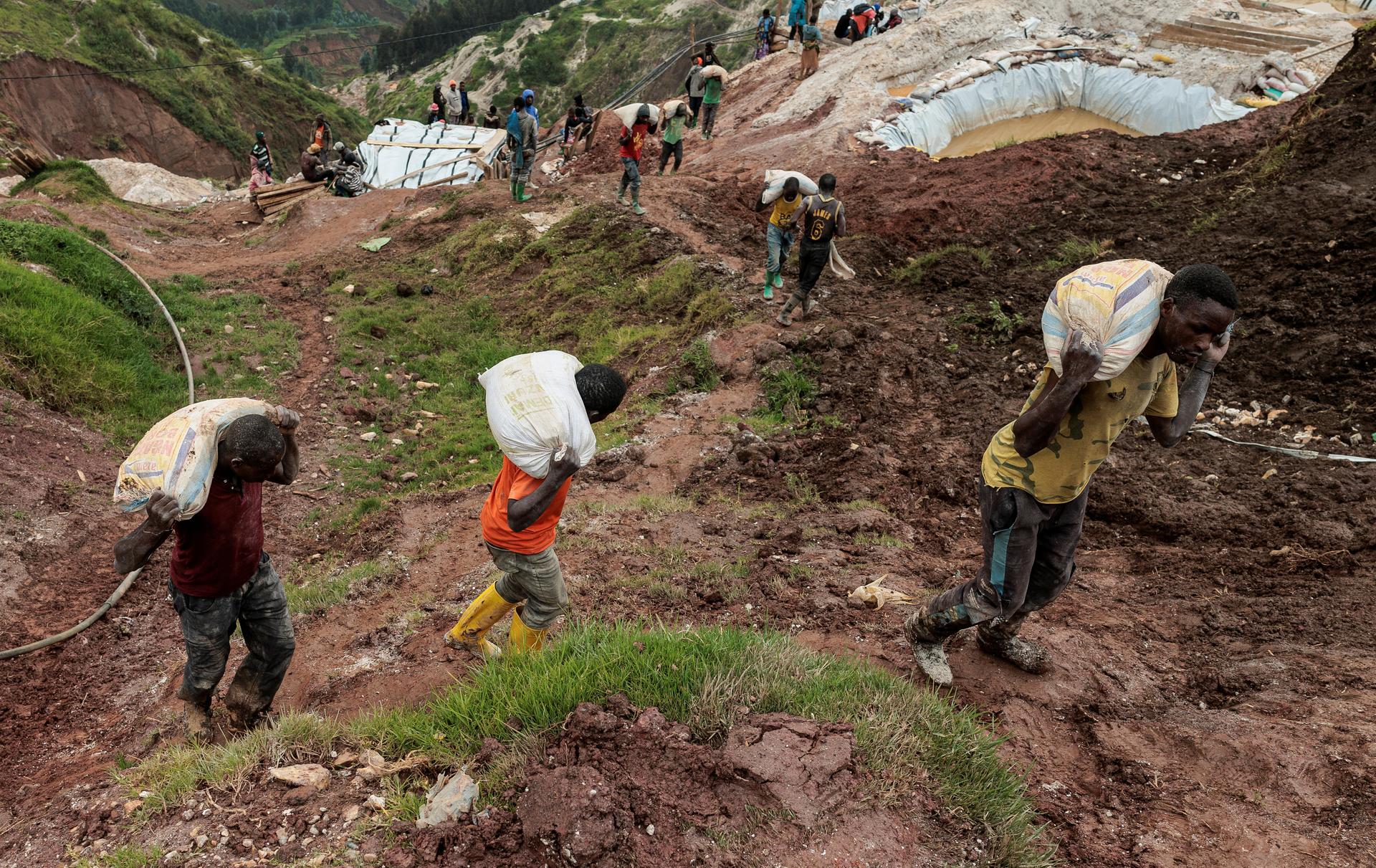 Labourers carry sacks of ore at the Rubaya coltan mine, town of Rubaya, which is controlled by M23 rebels, in the eastern Democratic Republic of Congo. REUTERS/Zohra Bensemra |