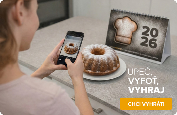 Nepatříte-li mezi milovníky masa, máme něco i pro Vás! V našem stolním kalendáři pro rok 2026 naleznete 53 receptů na moučníky a sladká jídla. Ať už dáváte přednost jednoduchým bábovkám či buchtám na plech, nebo rádi tvoříte složitější dezerty s krémem, na své si přijde každý z Vás. V kalendáři navíc po celý rok běží soutěž „Upeč, vyfoť, vyhraj!“ Nahrajte autorskou fotku některého moučníku z kalendáře k danému receptu a můžete vyhrát jednu z našich krásných kuchařek.